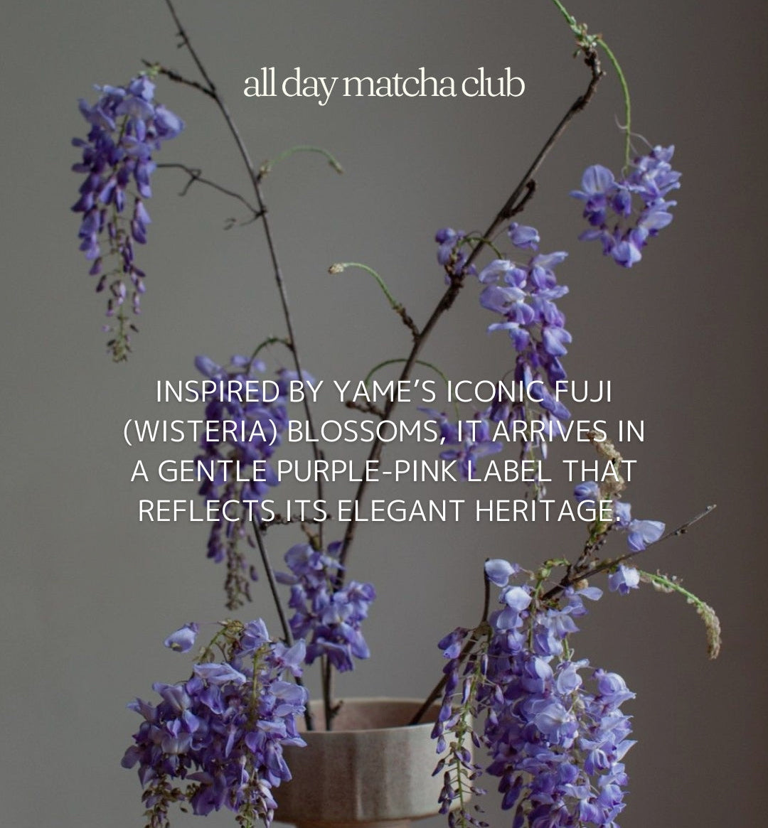 Inspired by Yame’s iconic Fuji (wisteria) blossoms, it arrives in a gentle purple-pink label that reflects its elegant heritage.